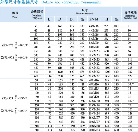 Z73/573/673/973W/Y/H-10C/P 16C/P Knife gate valve